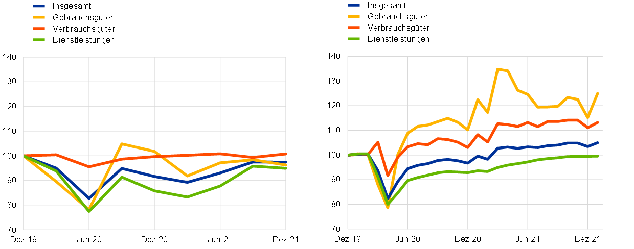(linke Grafik Index: Q4 2019=100; rechte Grafik Index: Dezember 2019=100) ![]() |