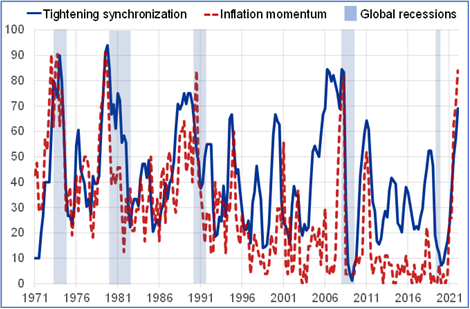 Aumenti dell’inflazione, interventi restrittivi sincronizzati e recessioni globali