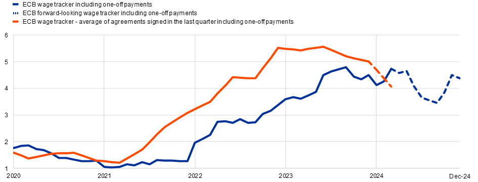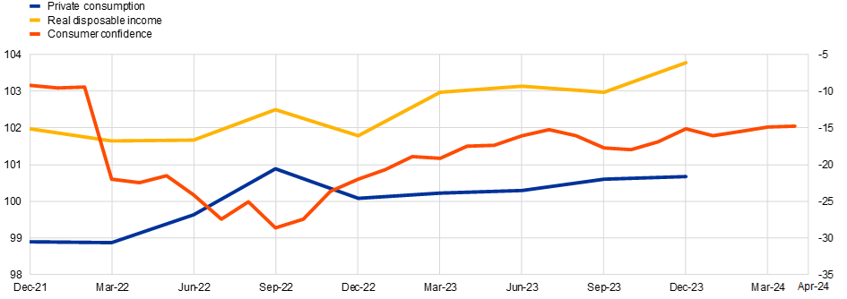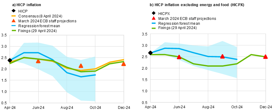 Sources: Eurostat, March 2024 ECB staff projections, Consensus Economics, Bloomberg and ECB calculations.