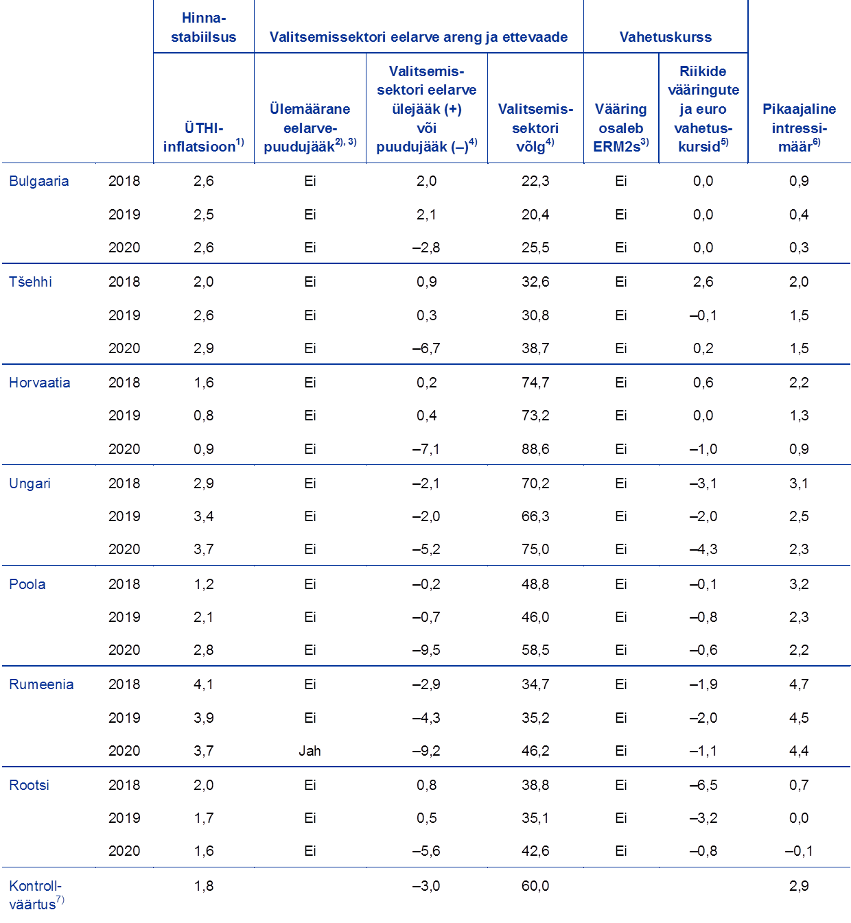 Keskmist ÜTHI-inflatsioonimäära vaadeldakse 2019. aasta aprillist 2020. aasta märtsini kestnud 12kuulisel vaatlusperioodil konkreetses riigis viimase kümne aasta jooksul hinnastabiilsuse vallas saavutatud majandustulemuste taustal. See võimaldab analüüsida vaatlusaluse riigi hindade arengu jätkusuutlikkust üksikasjalikumalt. Sellega seoses pööratakse tähelepanu rahapoliitika suunitlusele, eriti sellele, kas rahandusasutused on keskendunud eelkõige hinnastabiilsuse saavutamisele ja säilitamisele, aga ka sellele, kuidas on seda eesmärki toetanud teised majanduspoliitika valdkonnad. Arvesse võetakse ka makromajandusliku keskkonna mõju hinnastabiilsuse saavutamisele. Hindade arengut analüüsitakse seoses pakkumis- ja nõudlustingimustega, keskendudes sellistele teguritele nagu tööjõu ühikukulud ja impordihinnad. Samuti võetakse arvesse teiste asjakohaste hinnaindeksite arengusuundumusi. Ettevaatavalt antakse hinnang inflatsiooni arengule lähiaastatel, arvestades suuremate rahvusvaheliste organisatsioonide ja turuosaliste prognoose. Peale selle käsitletakse institutsioonilisi ja struktuurilisi aspekte, mis on olulised hinnastabiilsust soodustava keskkonna säilitamiseks pärast euro kasutuselevõttu.