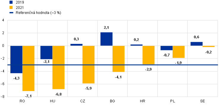 Z hľadiska udržateľnosti verejných financií sa výsledok v hodnotenom roku 2021 porovnáva s výsledkami hodnotenej krajiny za uplynulých desať rokov. Najprv sa hodnotí vývoj pomeru deficitu. Treba pamätať na to, že zmena ročného pomeru deficitu krajiny je obyčajne ovplyvňovaná rôznymi faktormi. Tieto vplyvy sa dajú rozdeliť na cyklické, ktoré odzrkadľujú reakciu deficitov na zmeny v hospodárskom cykle, a necyklické, ktoré sa často považujú za výsledok štrukturálnych alebo trvalých zmien rozpočtovej politiky. Takéto necyklické vplyvy, kvantifikované v tejto správe, však nemožno vždy v plnej miere považovať za odraz štrukturálnych zmien fiškálnych pozícií, pretože zahŕňajú aj účinok opatrení a osobitných faktorov, ktoré majú na rozpočtové saldo iba dočasný vplyv. Zistiť rozsah zmien štrukturálnych rozpočtových pozícií počas pandémie COVID‑19 je obzvlášť náročné vzhľadom na neistotu, pokiaľ ide o úroveň a tempo rastu potenciálnej hospodárskej produkcie.