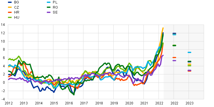 Po prvé, „priemerná miera inflácie vykazovaná v priebehu roka pred skúmaním“ je určená ako zmena 12-mesačného priemeru HICP za referenčné obdobie od mája 2021 do apríla 2022 voči predchádzajúcemu 12-mesačnému priemeru. Inflácia sa meria na základe indexu HICP, ktorý bol vytvorený na účely hodnotenia konvergencie v oblasti cenovej stability na porovnateľnom základe (viac v časti 6.2).