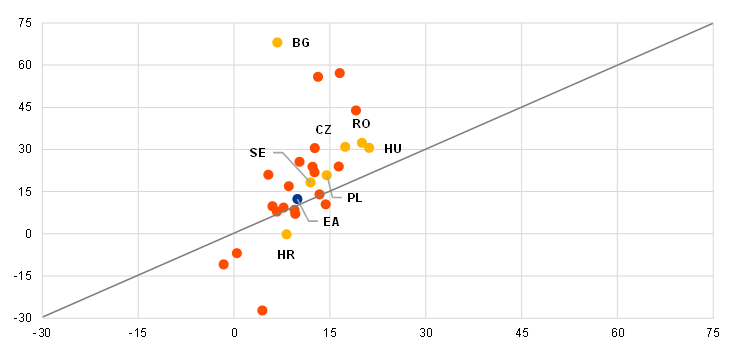 Vzhľadom na slabé stránky a komparatívne výhody inštitucionálnych ukazovateľov založených na vnímaní (napr. korupcia) a objektívnejších inštitucionálnych ukazovateľov (napr. konkurencieschopnosť) sú v grafoch 3.8 a 3.9 zohľadnené oba druhy ukazovateľov.