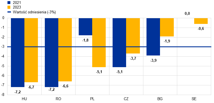 W odniesieniu do stabilności finansów publicznych wynik danego kraju za rok referencyjny – 2023 – ocenia się na podstawie osiągniętych przezeń wyników w ciągu ostatnich dziesięciu lat. Najpierw analizuje się rozwój wskaźnika deficytu finansów publicznych danego kraju. Warto pamiętać, że zmiana rocznego wskaźnika deficytu danego kraju jest zwykle wypadkową różnych czynników. W tym kontekście często dokonuje się podziału na zmiany „cykliczne”, czyli reakcje deficytu związane z wahaniami koniunkturalnymi, oraz „niecykliczne”, które z reguły są odzwierciedleniem strukturalnych lub stałych dostosowań polityki fiskalnej. Jednak zmiany niecykliczne, które zostały ujęte ilościowo w niniejszym raporcie, nie muszą wynikać wyłącznie ze strukturalnej zmiany sytuacji finansów publicznych, gdyż obejmują także przejściowe efekty wynikające z działań w dziedzinie polityki oraz z czynników szczególnych.