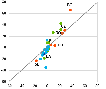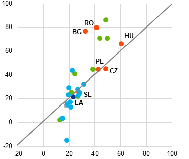 Podejście EBC do określania wartości odstających przedstawione w niniejszym raporcie jest zgodne z podejściem stosowanym w poprzednich raportach o konwergencji EBC. W niektórych przypadkach identyfikacja wartości odstających może być bardzo bliska. Zastosowanie tej samej metodologii może prowadzić do uzyskania nieco innych wyników w zależności od, na przykład, sposobu interpretacji czynników wyjątkowych.