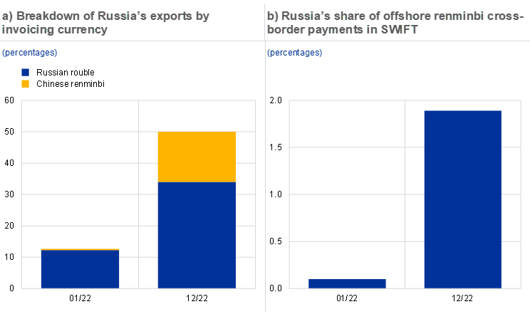 10. See the discussion in Box 1 entitled “The Russian invasion of Ukraine and international currencies”, The international role of the euro, European Central Bank, June 2022.