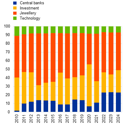 Sources: World Gold Council and ECB staff calculations.