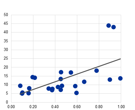 There are further signs that geopolitical considerations influence decisions by central banks to invest in gold. Between 2008 and early 2022, gold prices were negatively correlated with real yields, providing a hedge against low nominal interest rates and/or high inflation. This correlation broke down after Russia’s full-scale invasion of Ukraine, suggesting that gold prices have been influenced by other factors, such as geopolitical risk (Chart C, panel a).[6] Recent research indicates that imposing financial sanctions is associated with increases in the share of central bank reserves held in gold. Notably, in five of the ten largest annual increases in the share of gold in foreign reserves since 1999, the countries involved faced sanctions in the same year or the previous year.[7] Chart C, panel b) also points to geopolitical considerations as a motive for diversification into gold since the onset of Russia’s full-scale invasion of Ukraine. Countries that are geopolitically close to China and Russia have seen more marked increases in the share of gold in their official foreign reserves since the last quarter of 2021.[8]