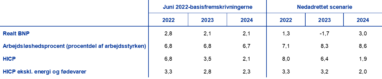 Juni 2022-basisfremskrivningerne og det nedadrettede scenarie for euroområdet
