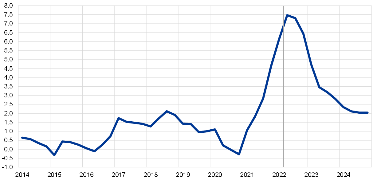 Inflācijas krasais kāpums palielinājis otrreizējas ietekmes risku uz inflāciju sakarā ar prasībām pēc augstākas darba samaksas. Nesenais krasais inflācijas kāpums līdz euro zonas vēsturē nepieredzētam līmenim ir faktors, kas var būtiski ietekmēt darba samaksas perspektīvu. Tas ir pirmais solis ceļā uz potenciālām otrreizējām atgriezeniskajām saitēm, kas var ietekmēt cenas. Ielikumā aplūkotas makroekonomiskās sekas, ko var radīt iespējamās pārmaiņas saiknē starp darba samaksu un cenām paaugstinātas inflācijas dēļ.[11]