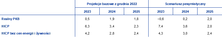 Scenariusz pesymistyczny dla strefy euro a projekcje bazowe z grudnia 2022