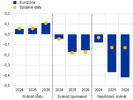 Vlivy na HDP a inflaci eurozóny a Spojených států