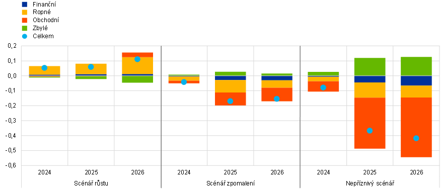 Scénář 2: Nižší trendový výstup | −0,4 | −0,4 | −0,4 | −1,2 |
