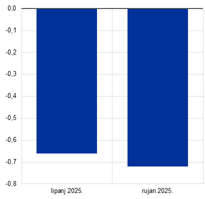 inflacija mjerena HIPC‑om | –0,1 | –0,6 | –0,4 | 0,1 | 0,6 | 0,4 | 0,0 | 0,1 | 0,2 |