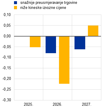 Utjecaj jačeg preusmjeravanja trgovine i nižih kineskih izvoznih cijena na izvoz