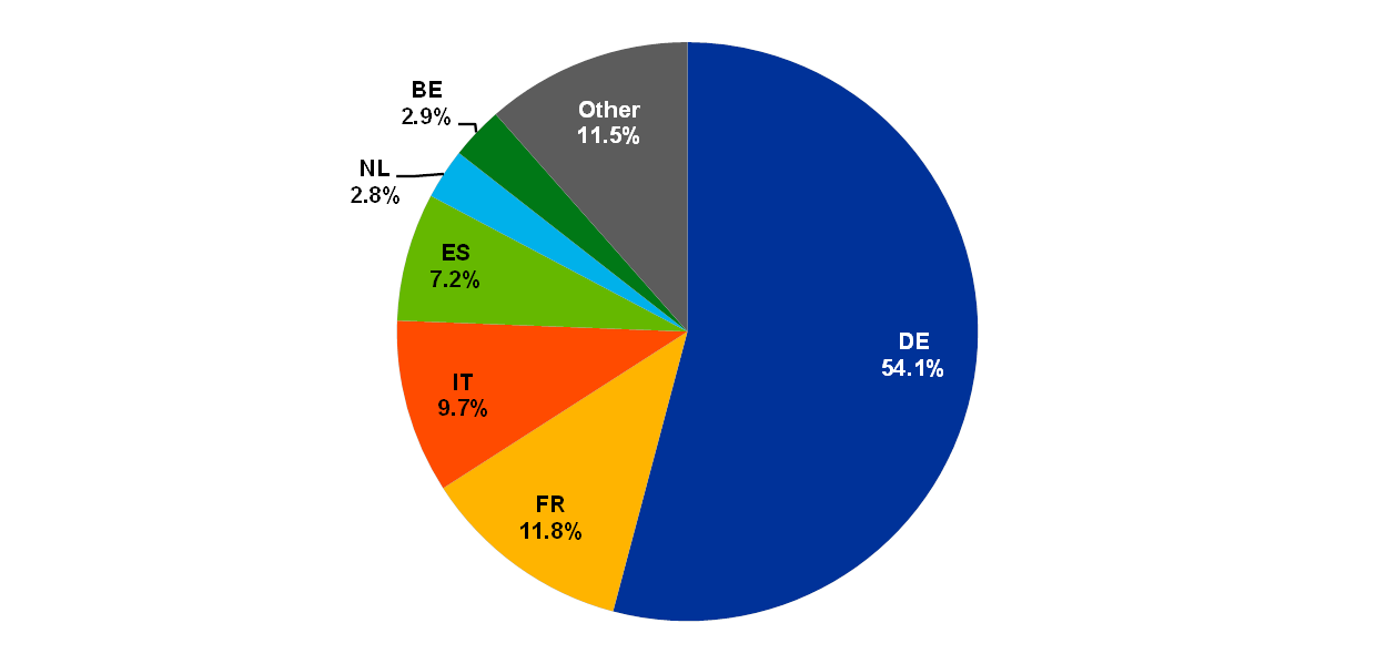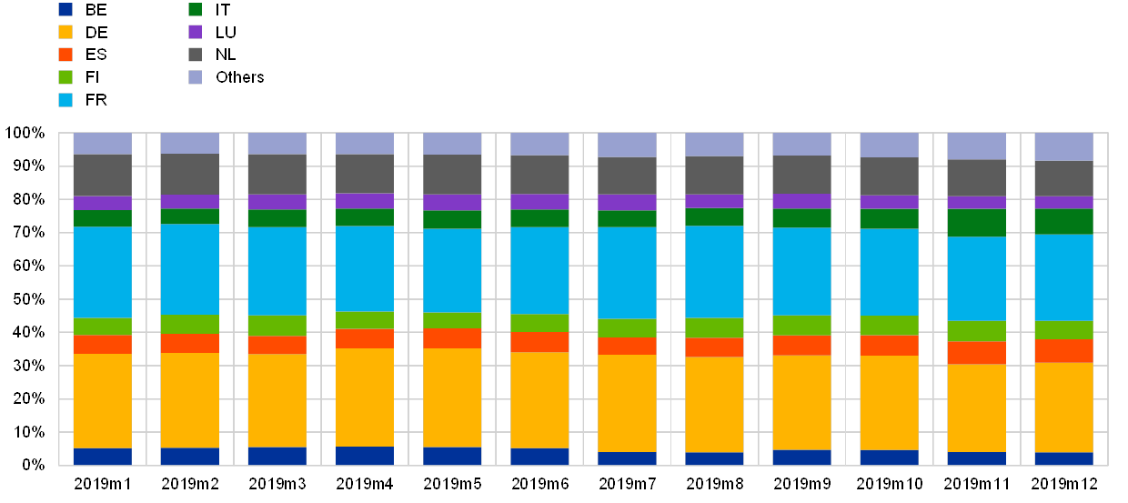 27. TARGET2 claim and liability countries denote the jurisdictions in which the corresponding national central banks have a claim vis-à-vis the ECB and, respectively, a liability. TARGET2 claims and liabilities arise from net cross-border payments in central bank money. TARGET2 balances are calculated as the sum of all TARGET2 claims.
