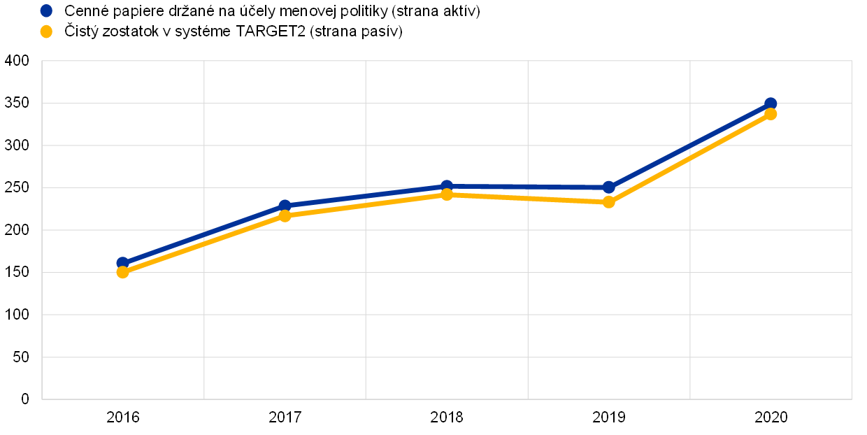 Čisté zostatky v systéme TARGET2 a cenné papiere držané na účely menovej politiky