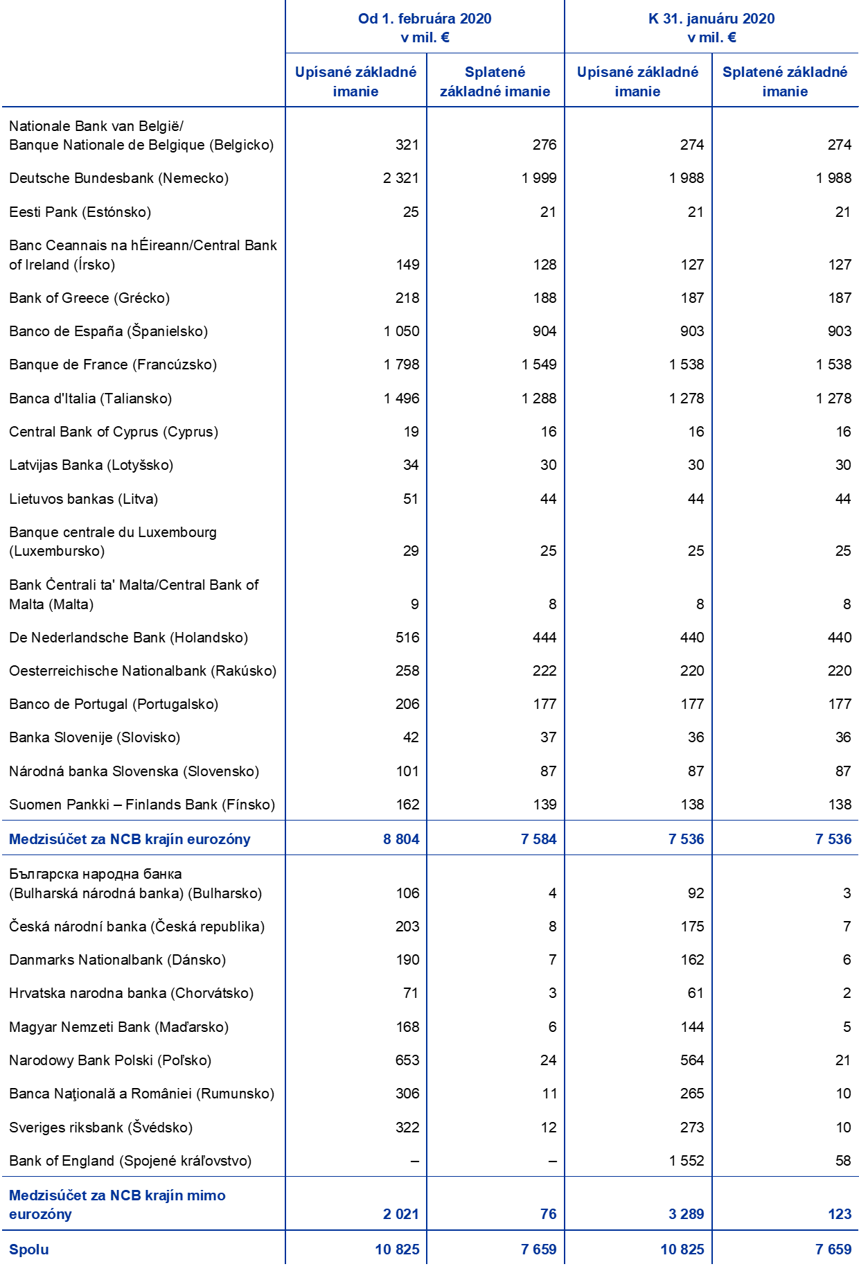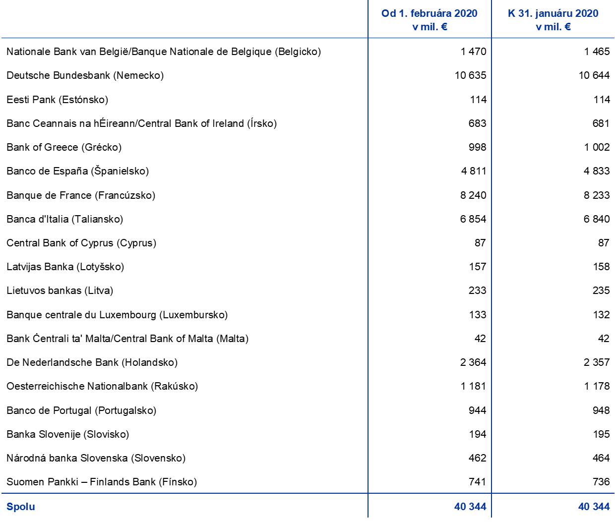 - Tlačová správa z 30. januára 2020 o upísanom základnom imaní ECB po vystúpení Bank of England z ESCB.