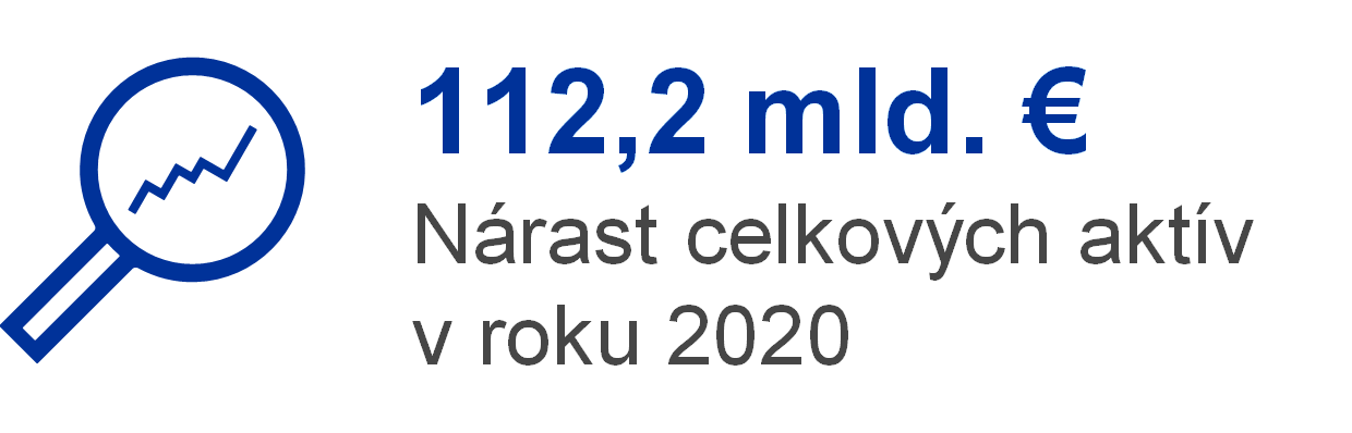 V roku 2020 sa celkové aktíva ECB zvýšili o 112,2 mld. € na 569,3 mld. €, najmä v dôsledku jej podielu na nákupe cenných papierov v rámci nového núdzového pandemického programu nákupu aktív (pandemic emergency purchase programme – PEPP)[6] a programu APP. Tieto nákupy viedli k zvýšeniu stavu položky „Cenné papiere držané na účely menovej politiky“, zatiaľ čo peňažné vyrovnanie týchto nákupov prostredníctvom účtov v systéme TARGET2 viedlo k zodpovedajúcemu nárastu v položke „Záväzky v rámci Eurosystému“. K tomuto zvýšeniu prispel aj nárast hodnoty eurových bankoviek v obehu.