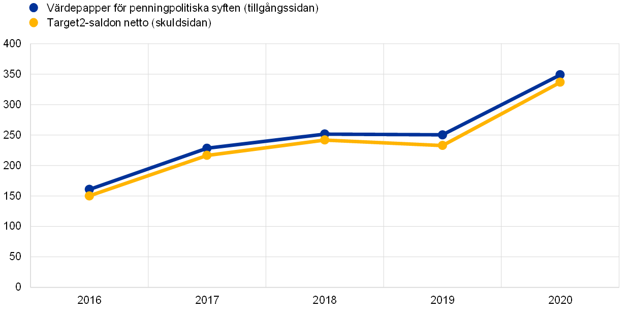 Target2-saldo netto och värdepapper som innehas i penningpolitiska syften
