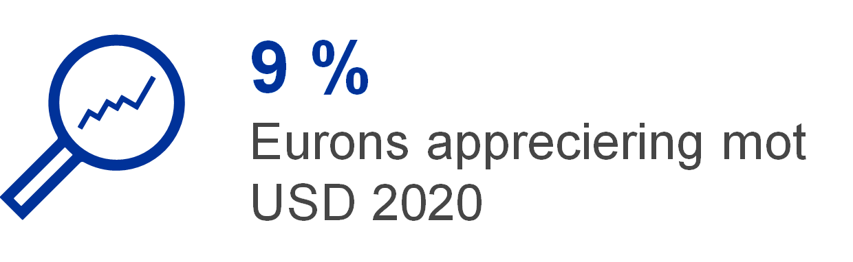 US-dollar är fortfarande den största komponenten i ECB:s valutareserv och uppgick till ca 76 procent av det totala innehavet vid slutet av 2020.