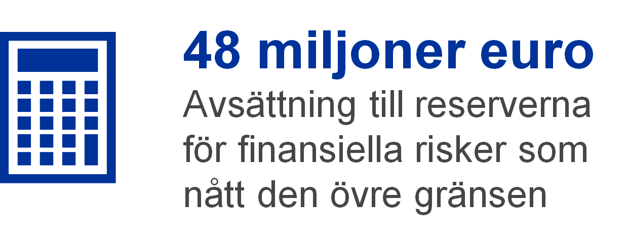 Med tanke på dess stora exponering mot finansiella risker (se avsnitt 1.4.1, ”Finansiella risker”) håller ECB en avsättning för finansiella risker. Varje år granskas storleken på denna avsättning med beaktande av ett antal faktorer, inbegripet innehavet av risktillgångar, beräknat resultat för det kommande året och en riskbedömning. Avsättningar för finansiella risker, inklusive eventuella belopp i ECB:s allmänna reservfond, får inte överstiga värdet av det kapital som betalats in av de nationella centralbankerna i euroområdet.