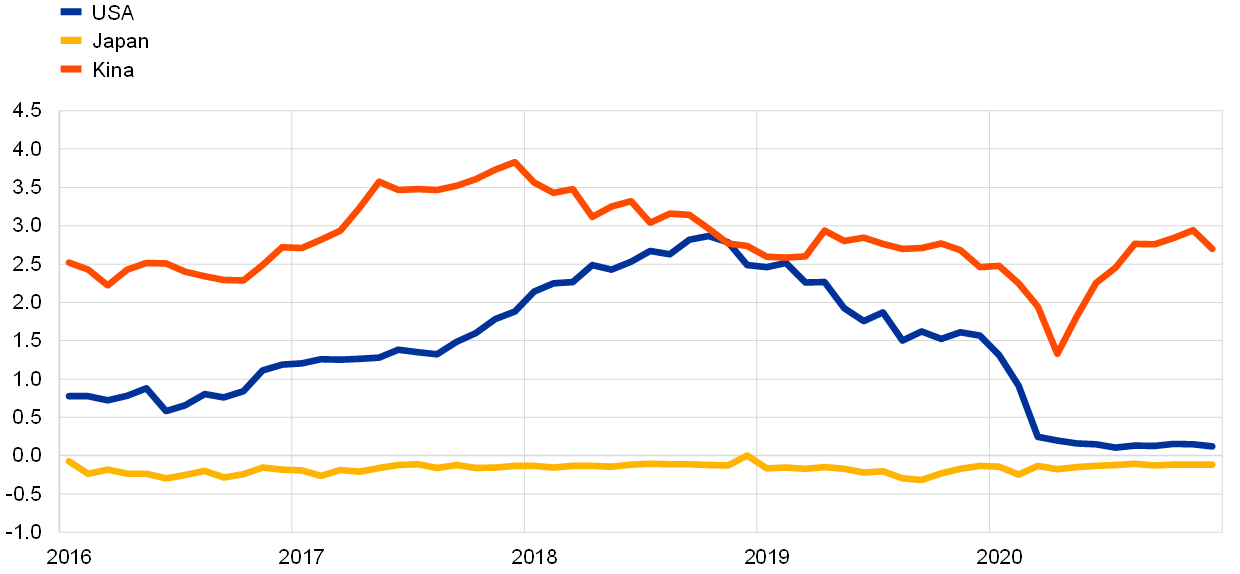 Tvååriga statsobligationsräntor i USA, Japan och Kina
