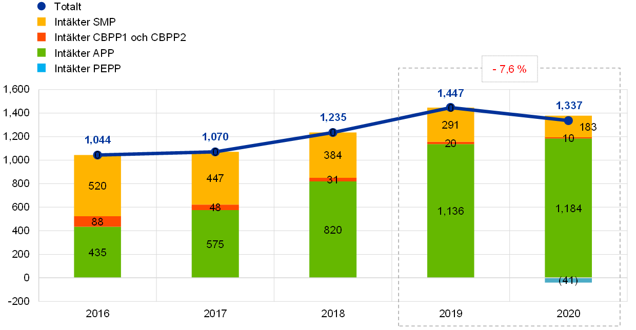 Under 2020 genererade värdepappersinnehav i penningpolitiska syften runt 66 procent av ECB:s nettoränteintäkter.