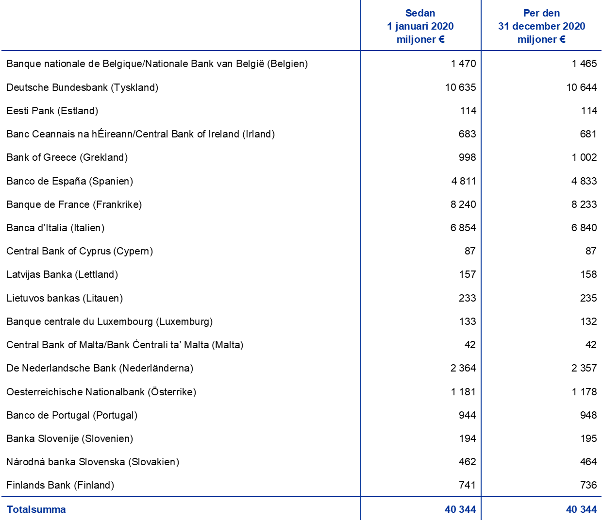 15. Se pressmeddelandet från den 30 januari 2020 om ECB:s tecknade kapital efter Bank of Englands utträde ur ESBC.