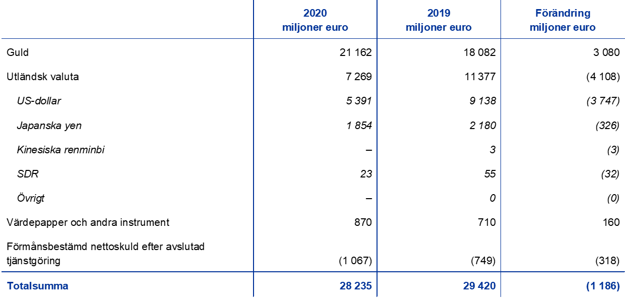 Anm.: ”Värderegleringskonton för guld” innefattar inte de bidrag som gjorts till ECB:s värderegleringskonton för guld av de nationella centralbanker i medlemsstater som gått med i euroområdet efter den 1 januari 1999, per dagen före deras inträde i Eurosystemet.