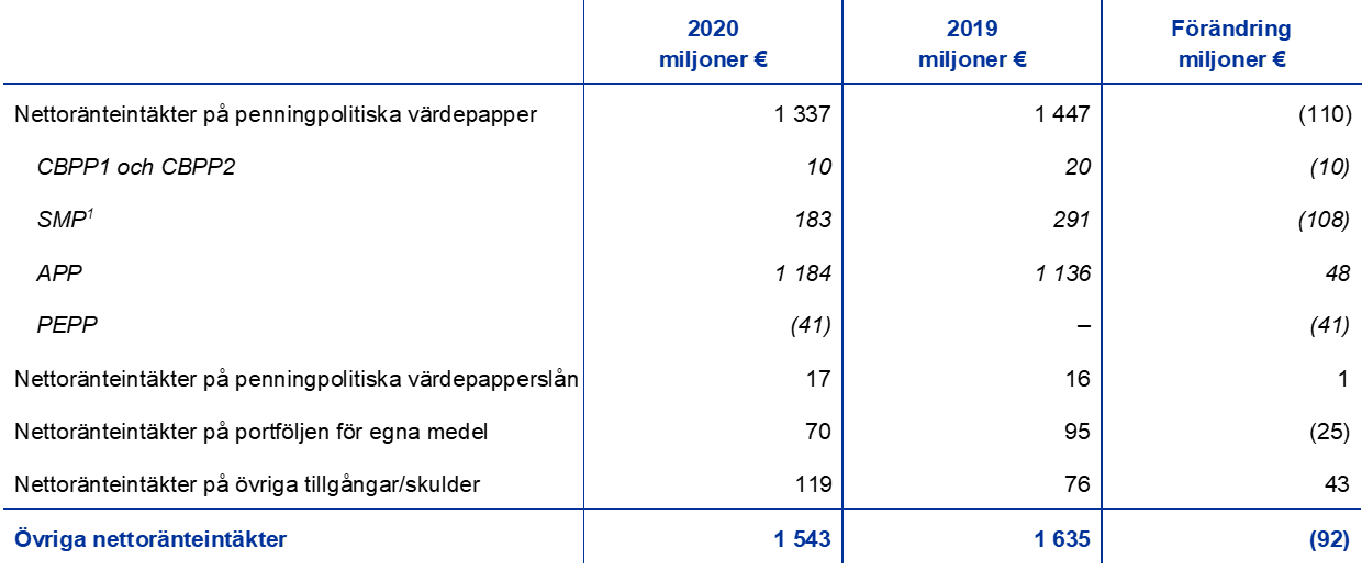 Nettoränteintäkter på värdepapper som innehas i penningpolitiska syften