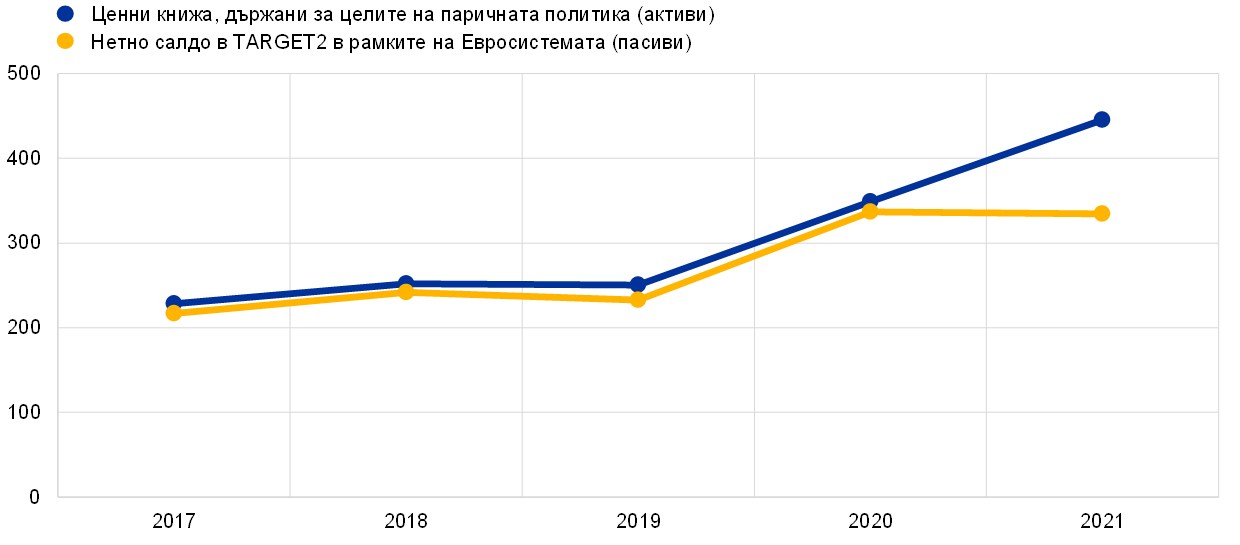 Нетно салдо в TARGET2 в рамките на Евросистемата и ценни книжа, държани за целите на паричната политика