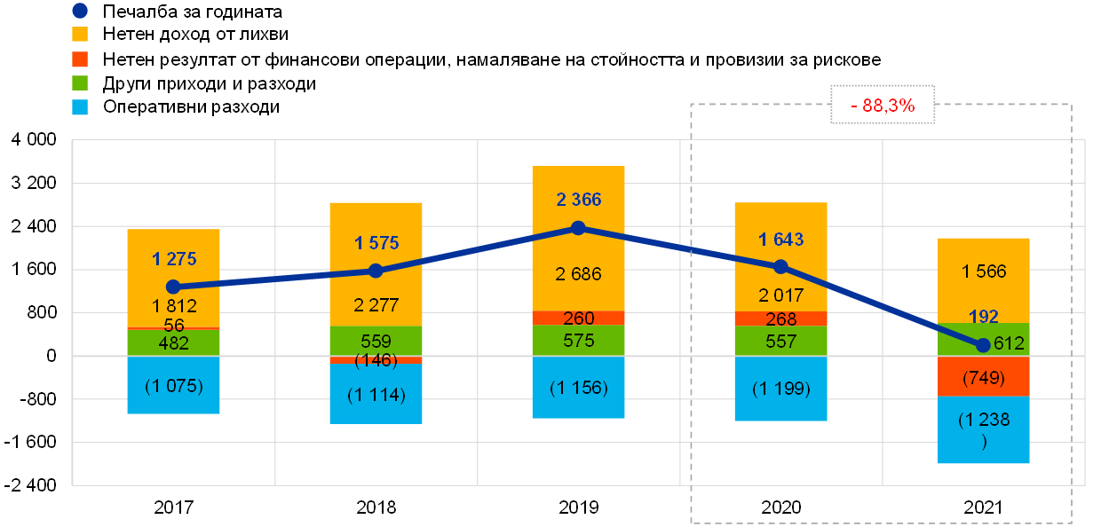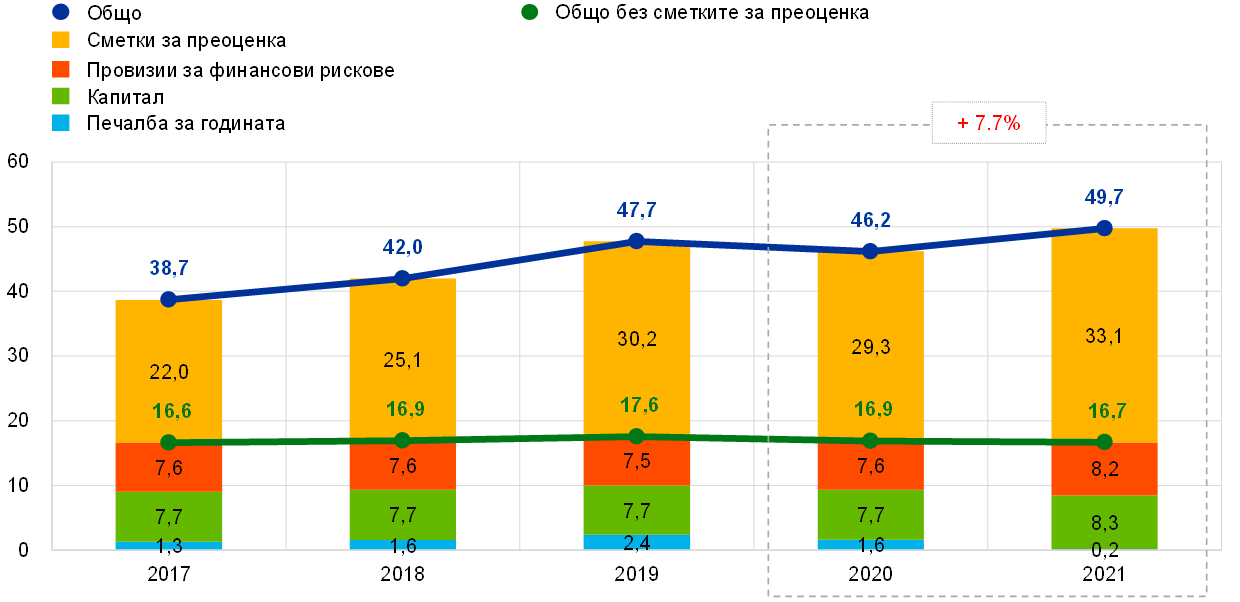 - Увеличението на провизиите за финансови рискове доведе до съответно намаление на печалбата за 2021 г.