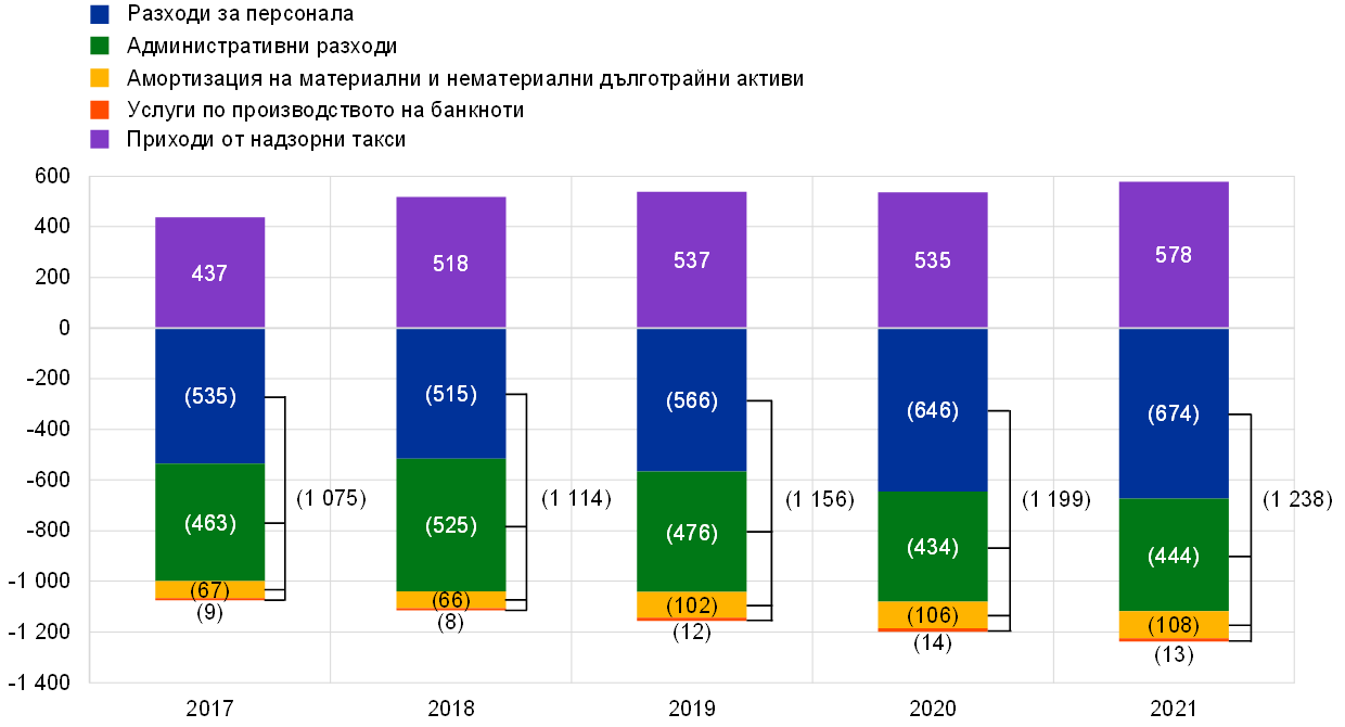 - Приходът от надзорни такси е включен в показателя Други приходи и разходи (Графика 13).