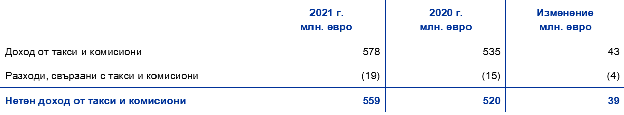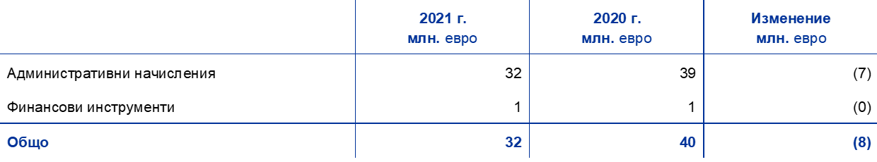 През 2021 този показател се състои от възстановяването на административни санкции, наложени преди от ЕЦБ на три поднадзорни лица от една и съща група, за които съответните решения бяха частично отменени от съда (вижте приложение 25 Нетни приходи от и разходи за такси и комисиони).