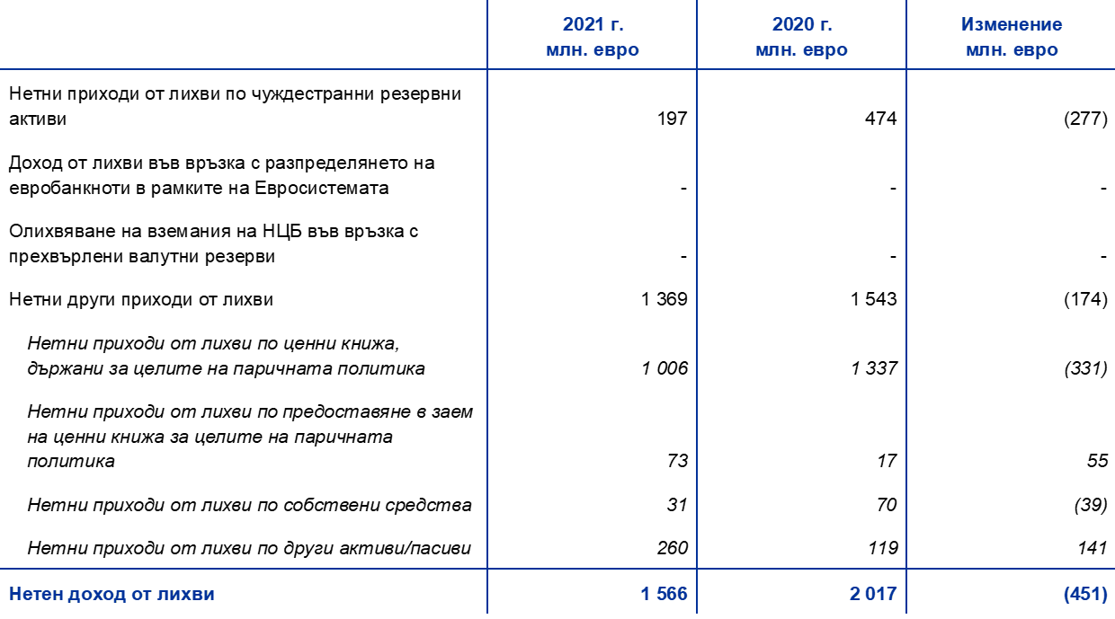Нетен доход от лихви по ценни книжа, държани за целите на паричната политика