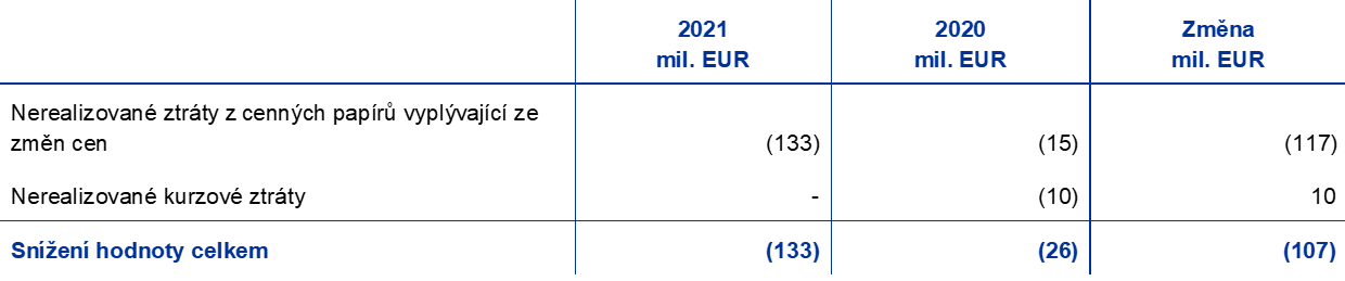 - Navýšení rezervy ke krytí finančních rizik vedlo k odpovídajícímu poklesu zisku v roce 2021.