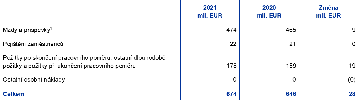 - Čistá částka zaznamenaná ve výkazu zisku a ztráty v souvislosti s důchodovými opatřeními stávajících členů Výkonné rady a stávajících členů Rady dohledu zaměstnaných ECB, viz poznámka č. 13.3 „ostatní“.