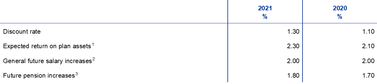 40. The defined benefit pillar of the plan reflects only the compulsory contributions made by the ECB and staff. Voluntary contributions made by staff in a defined contribution pillar in 2021 amounted to €220 million (2020: €186 million). These contributions are invested in the plan assets and give rise to a corresponding obligation of equal value.