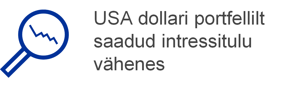 Puhas intressitulu välisvaluutareservidelt alanes 277 miljoni euro võrra 197 miljoni euroni peamiselt seoses väiksema intressituluga USA dollarites nomineeritud väärtpaberitelt. USA dollarites nomineeritud võlakirjade madala tulususe tõttu valdava osa 2020. ja 2021. aasta jooksul (vt joonis 17) ning varem soetatud kõrgema tulususega võlakirjade müügi ja lunastamise tõttu alanes EKP USA dollari portfellilt saadud keskmine intressimäär 2021. aastal eelnenud aastaga võrreldes veelgi.