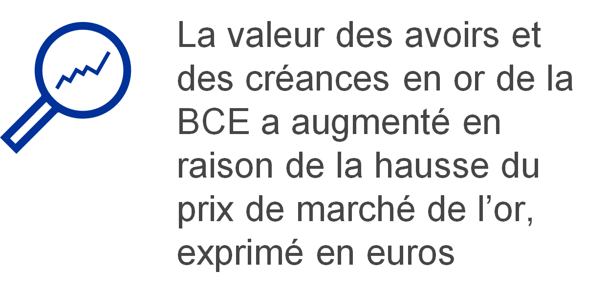 En outre, l’augmentation de la valeur des billets en euros en circulation et de la valeur de marché des avoirs de réserve de change de la BCE a aussi contribué à l’accroissement de la taille du bilan de la BCE.