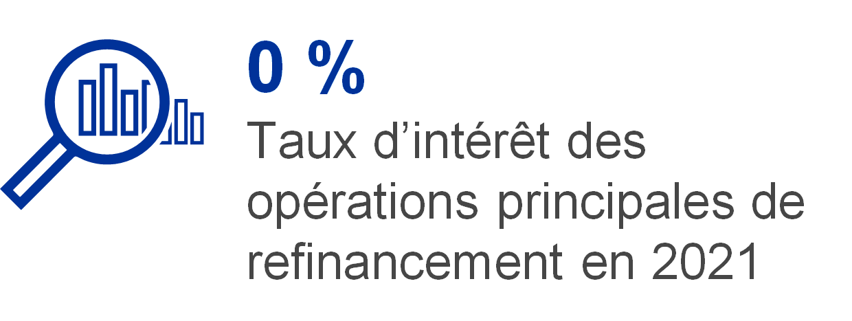 - Depuis le 16 mars 2016, le taux d’intérêt appliqué par l’Eurosystème à ses appels d’offres dans le cadre des opérations principales de refinancement est de 0 %.