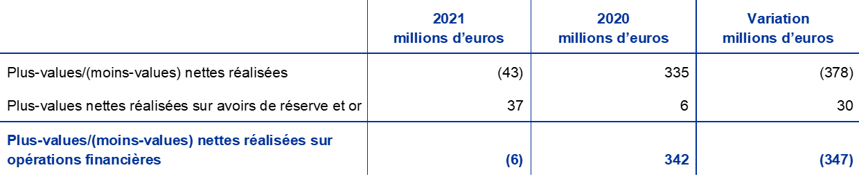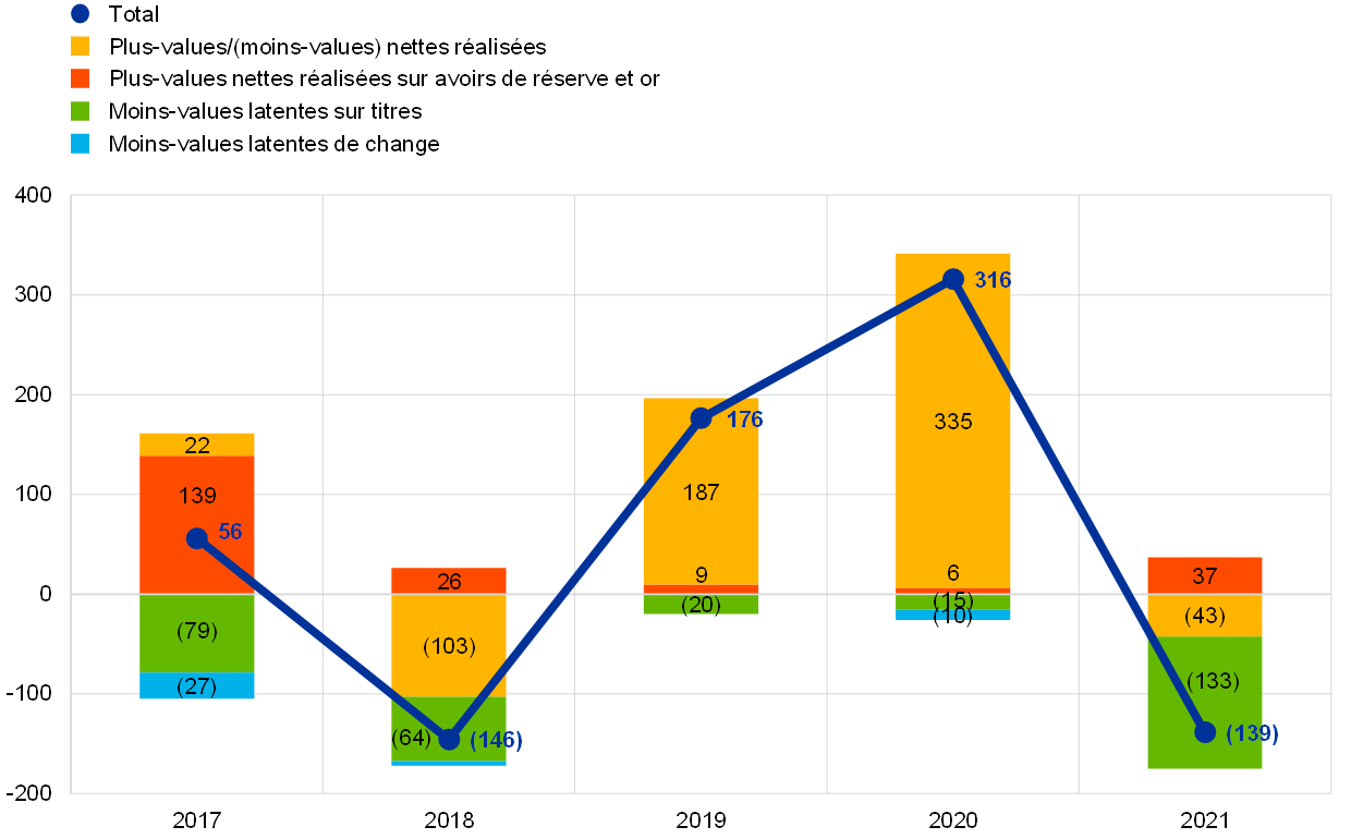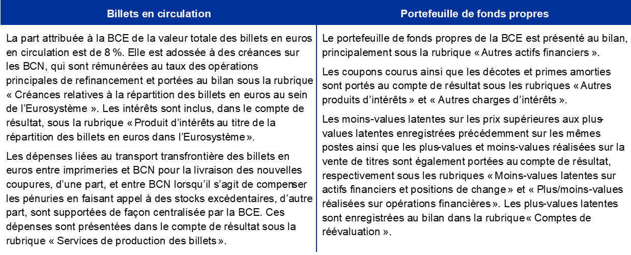 Note : Les « Comptes de réévaluation » comprennent les plus-values de réévaluation totales sur les avoirs en or, en devises et en titres, à l’exclusion du compte de réévaluation relatif aux avantages postérieurs à l’emploi.