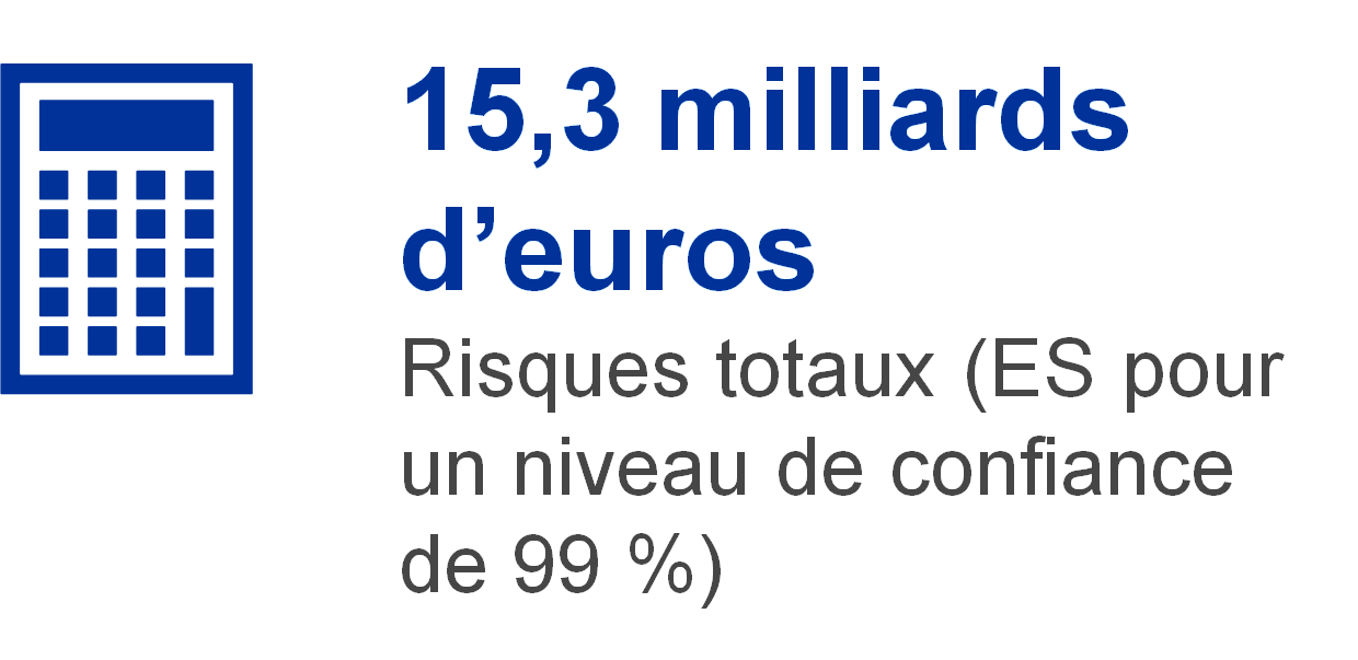 - L’ES est défini comme la perte moyenne, pondérée par les probabilités, qui survient dans le pire des scénarios (1-p) %, où p correspond au niveau de confiance.