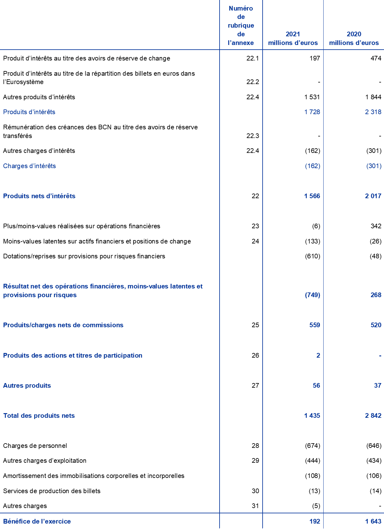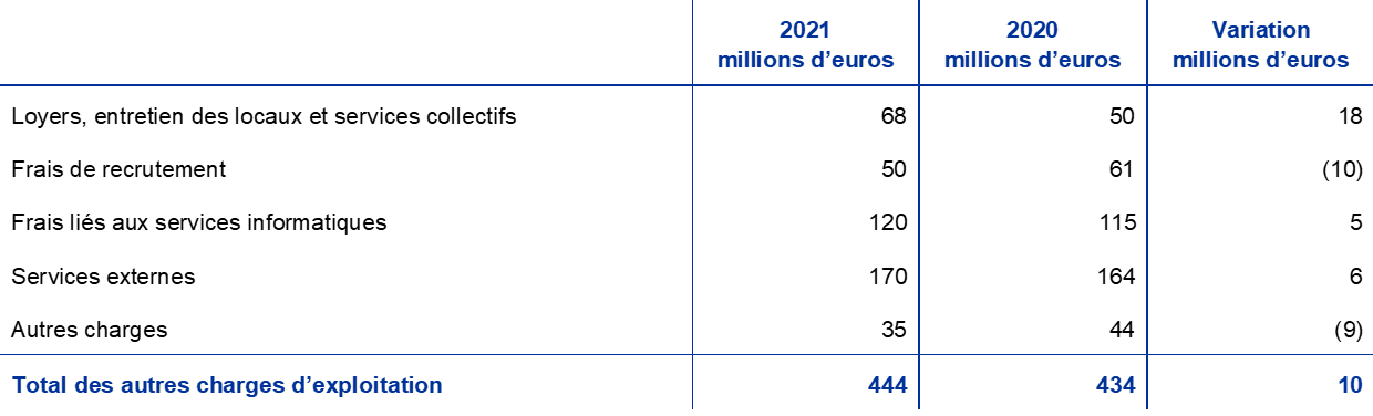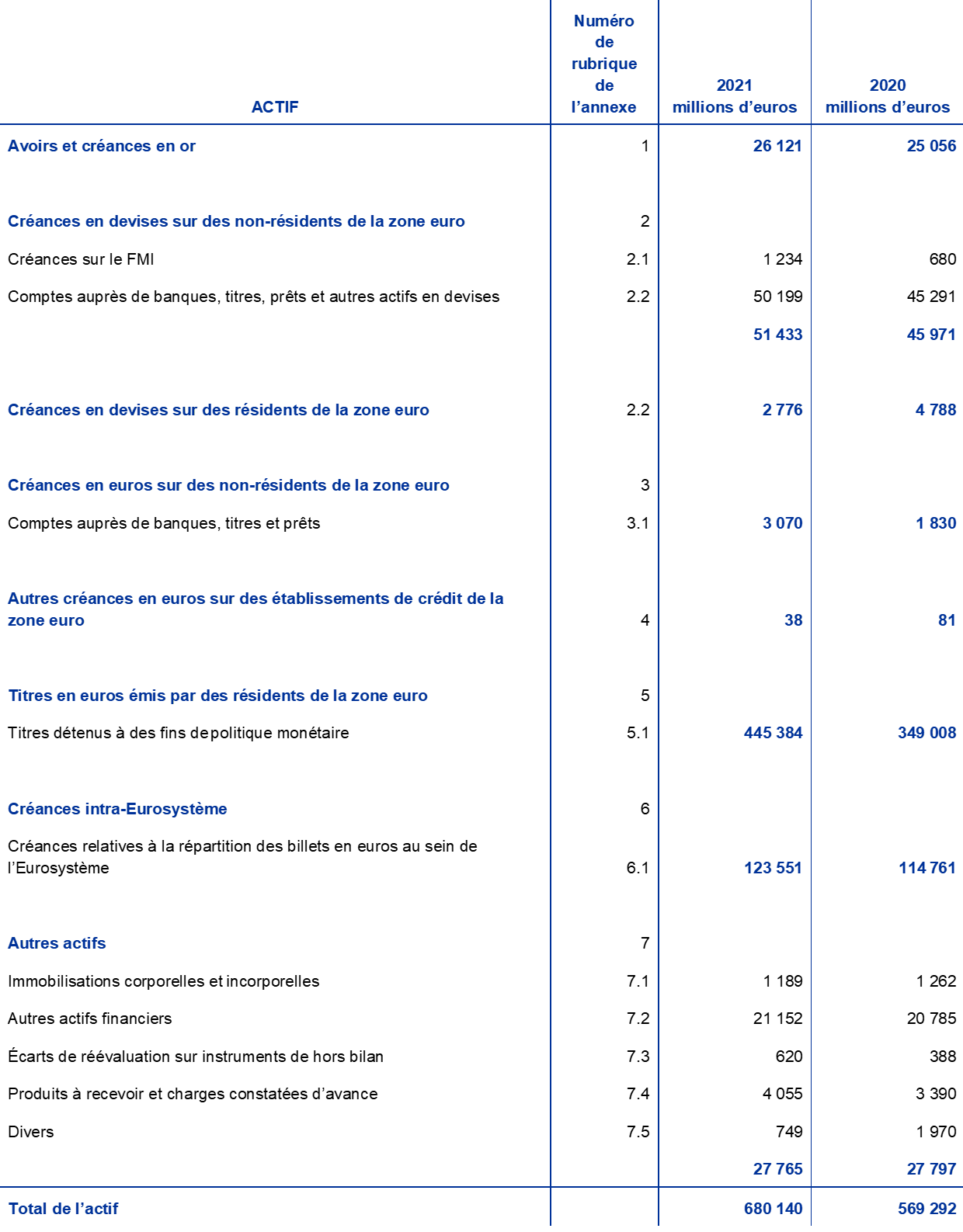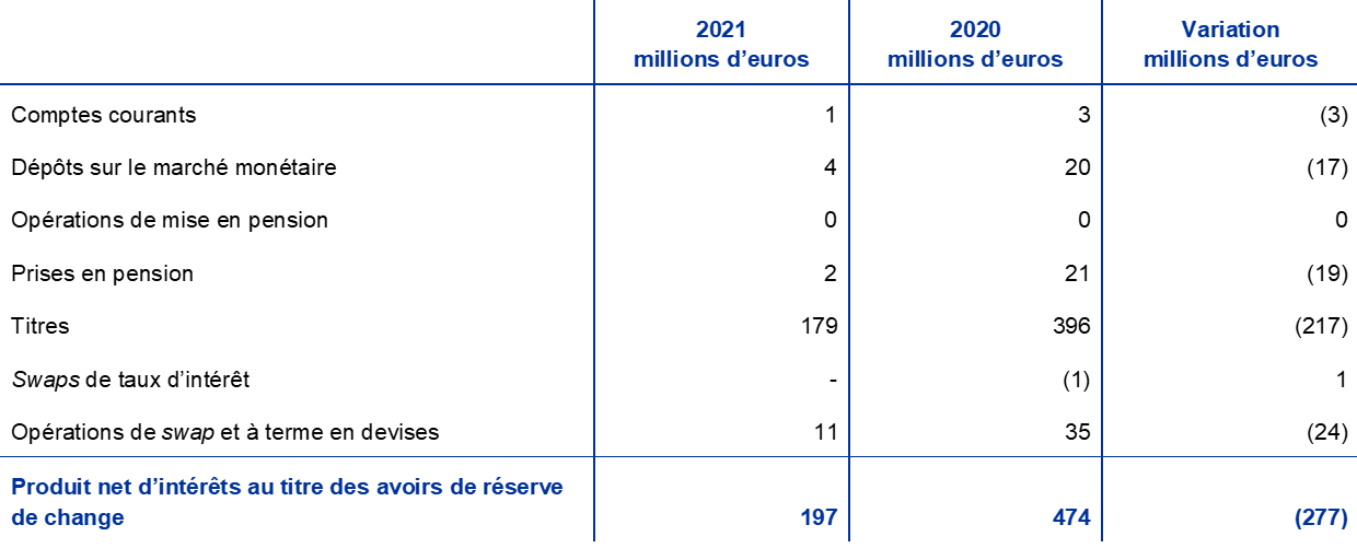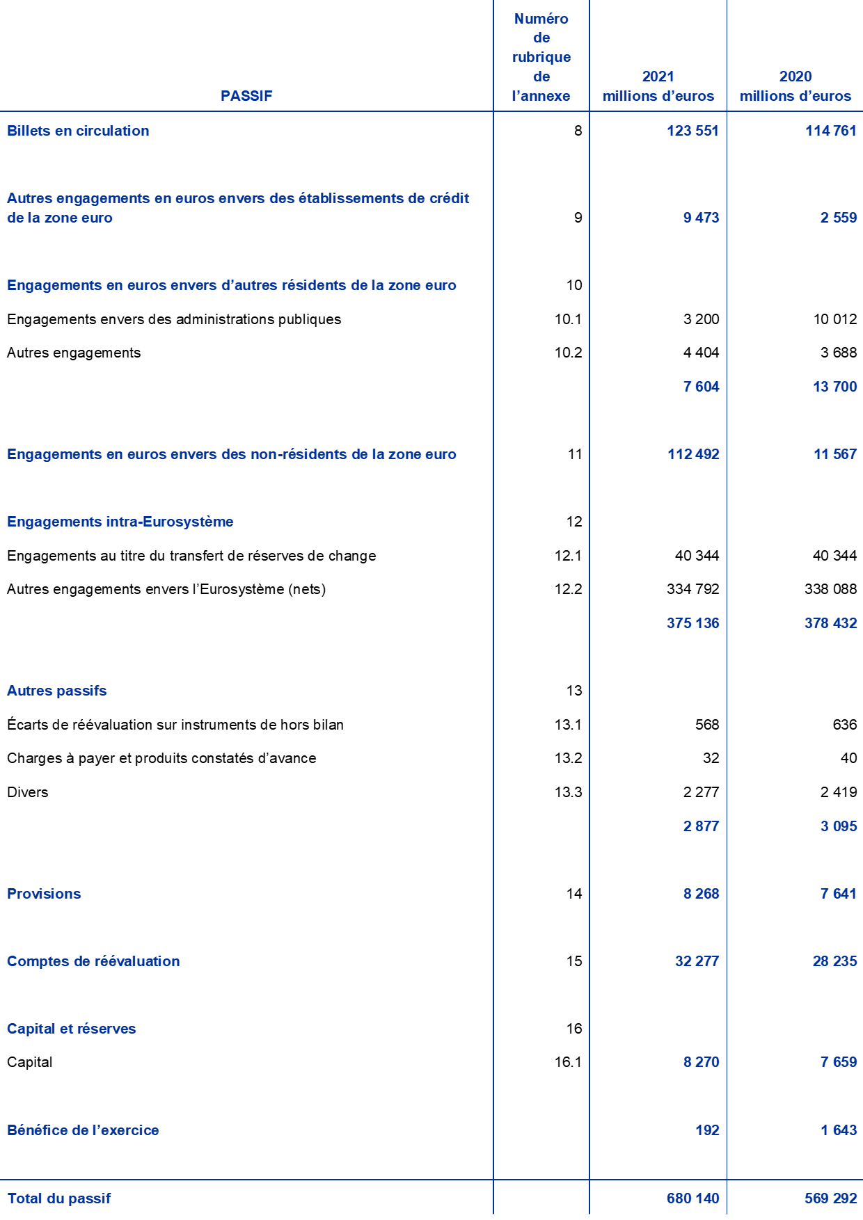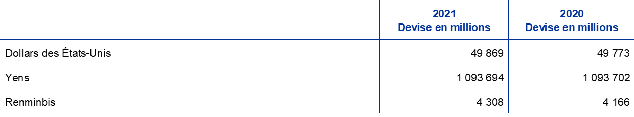 Cette annexe ne fait pas partie des états financiers de la BCE pour l’année 2021.