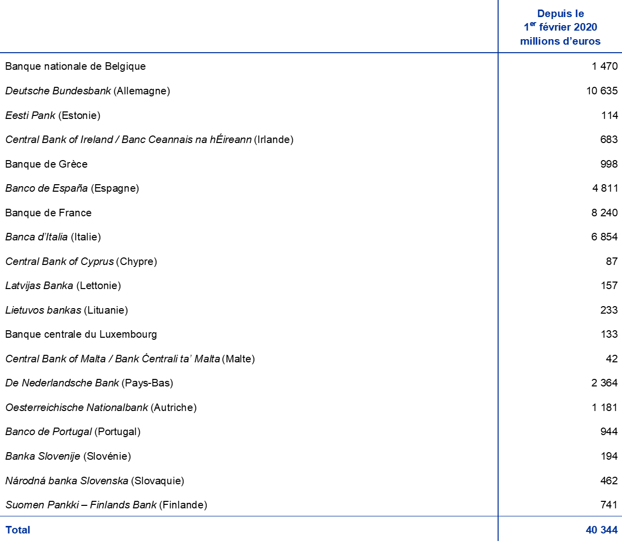 - Cf. communiqué de presse du 30 janvier 2020 sur le capital souscrit de la BCE à la suite du retrait de la Banque d’Angleterre du SEBC.