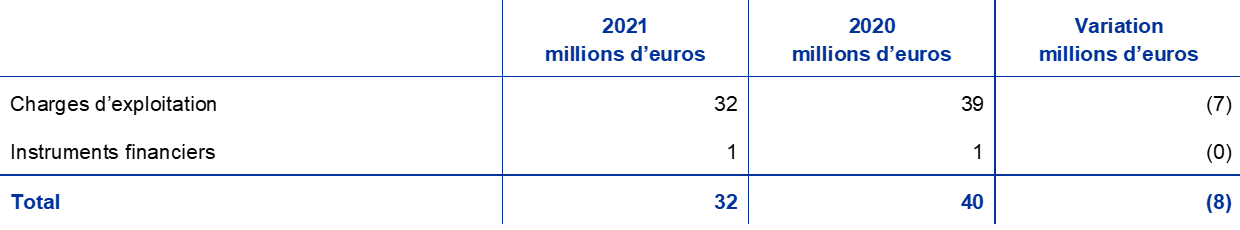 En 2021, cette rubrique comprenait le remboursement des sanctions administratives imposées antérieurement par la BCE à trois entités soumises à la surveillance prudentielle appartenant au même groupe, pour lesquelles les décisions correspondantes ont été en partie annulées (cf. note 25 « Produits/charges nets de commissions »).