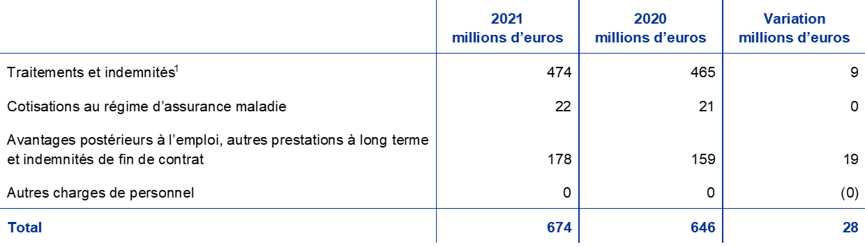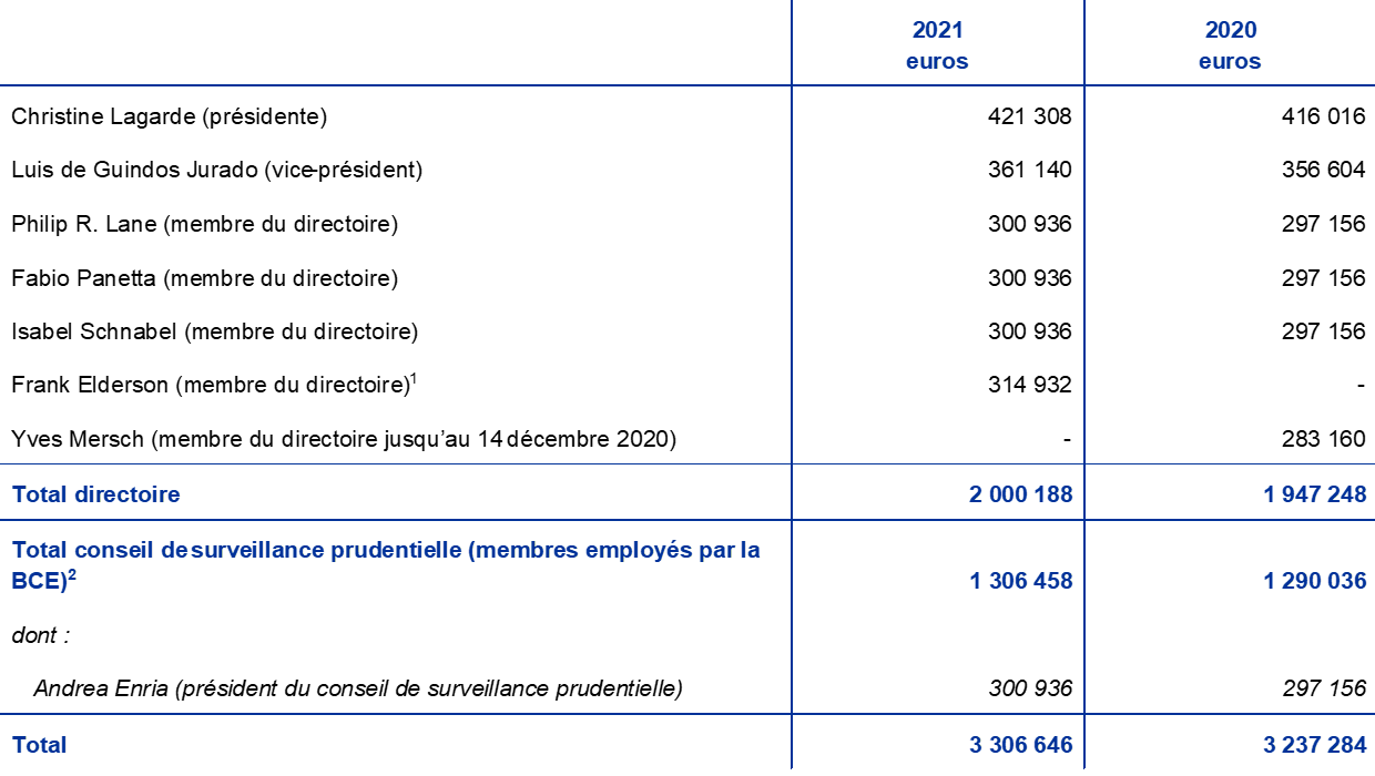 - Pour le montant net imputé au compte de résultat en ce qui concerne le régime de retraite des membres actuels du directoire et du conseil de surveillance prudentielle employés par la BCE, cf. note 13.3 « Divers ».