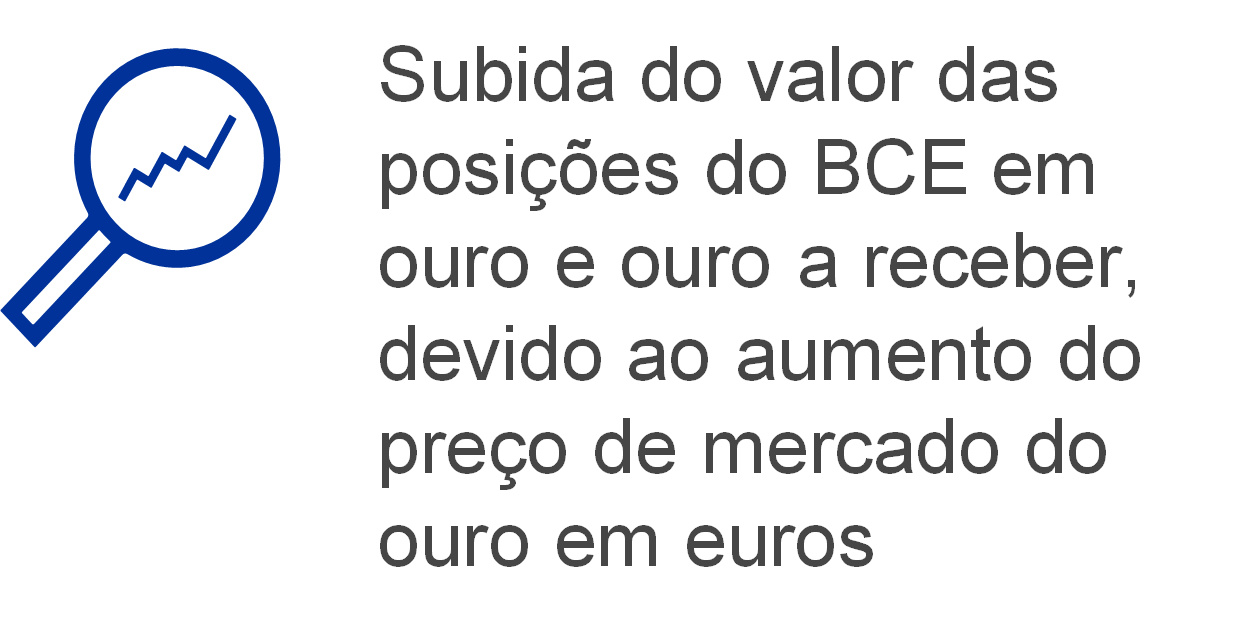 Nota: “Contas de reavaliação do ouro” não inclui as contribuições para as contas do BCE de reavaliação acumulada do ouro, realizadas pelos BCN dos Estados‑Membros que aderiram à área do euro após 1 de janeiro de 1999, no dia anterior à respetiva entrada para o Eurosistema.