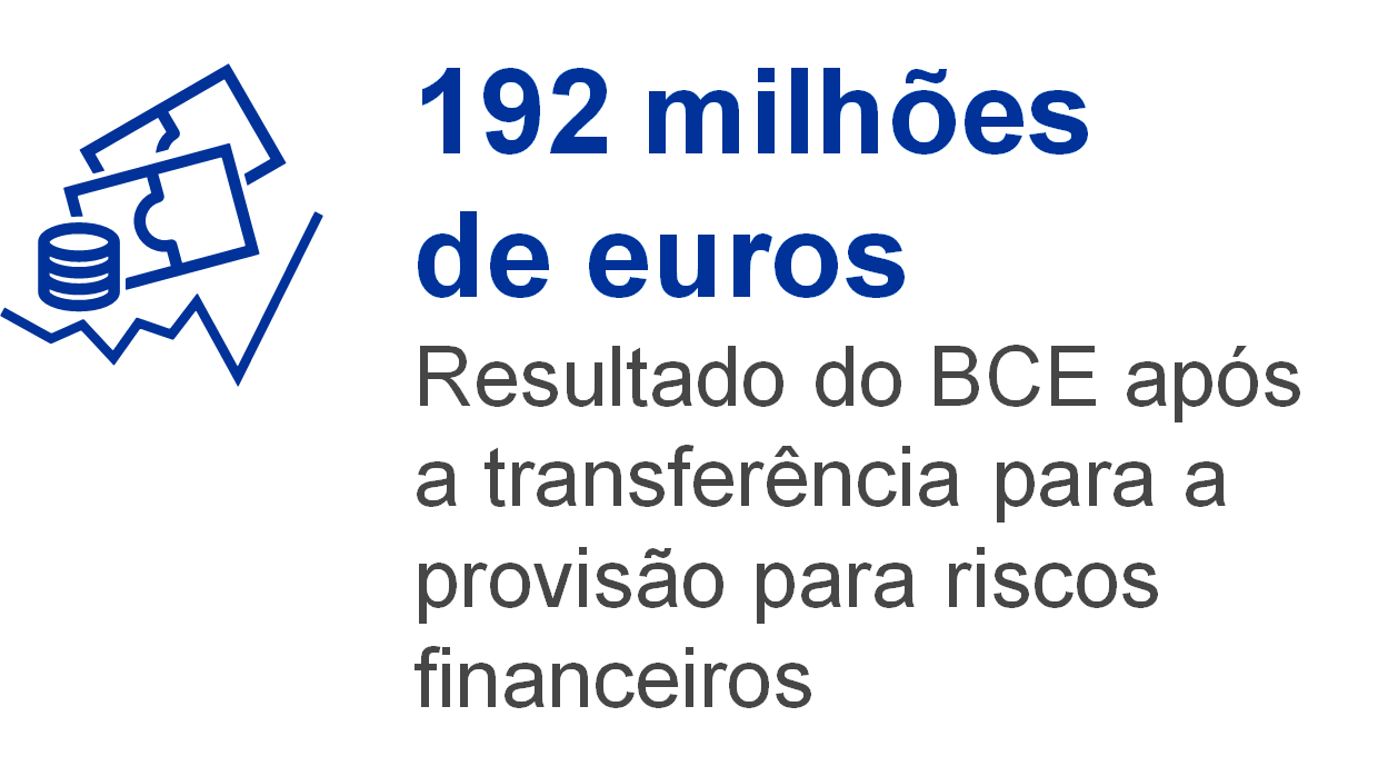 O resultado líquido do BCE em 2021 cifrou‑se em 192 milhões de euros. Em 31 de janeiro de 2022, no seguimento de uma decisão do Conselho do BCE, foi efetuada uma distribuição intercalar de proveitos, no montante de 150 milhões de euros, aos BCN dos países da área do euro. Além disso, o Conselho do BCE decidiu distribuir os lucros remanescentes, no montante de 42 milhões de euros, pelos BCN dos países da área do euro.
